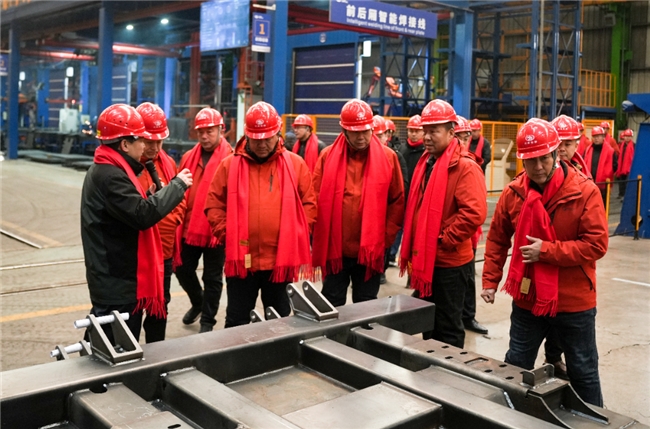 发车仪式结束后,与会嘉宾们前往南厂、北厂车间进行实地参观。从半挂焊接线、电泳线到自卸总装线,从抛丸、前处理到喷粉工艺,再到起重机总装车间,每一道生产工序均彰显着精益制造的匠心精神,让嘉宾们直观感受到产品背后的品质保障体系。